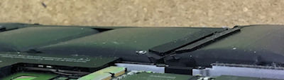 画像は真上からとなりますのでバッテリーが膨張しているのかわかりづらいですが、次の画像をご確認ください。