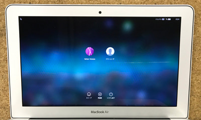 MacbookAirをお預かりし電源コンセントをつなぐと正常に起動する事は確認できました。