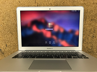 ログイン画面が見れていると思いますが、当社でMacの液晶修理を行う場合はデータの初期化など忘れず、そのままの状態で修理を進めますので、返却後はすぐにMacBook Airを使うことが可能です。
