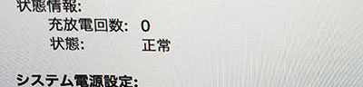 バッテリー交換後に「このMacについて」からバッテリーの状態の確認をすると、充放電回数0回、状態は【修理サービス推奨】から正常に変わっていることが確認できました。