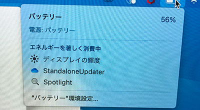 デスクトップ側の右上にあるバッテリーをクリックしても 【修理サービス推奨】の表示は消えていることがわかります。