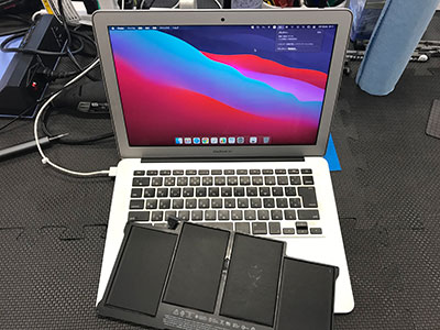 MacBook Airのバッテリーの調子が悪いとのことで修理の依頼がありました。